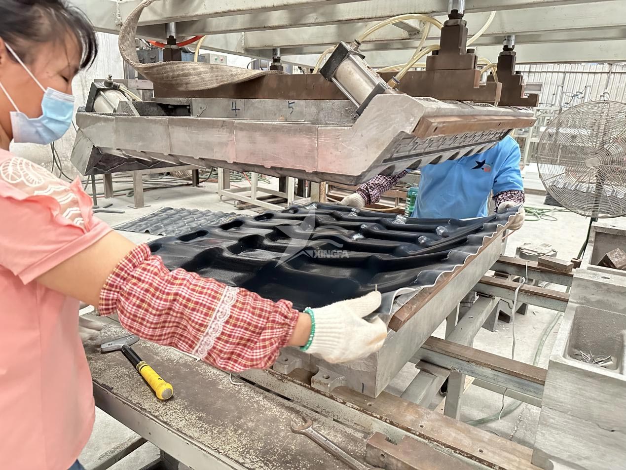 6. 脫模與修整: 一旦樹脂完全固化,模具會被打開,暴露出瓦片的形狀。瓦片會被輕輕取出,隨后進行修整和修飾,確保其表面光滑且符合設計要求。
