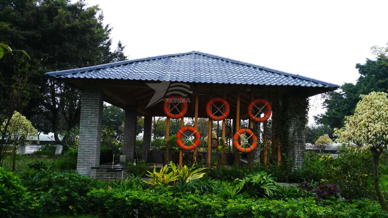 就安全性而言,樹脂瓦表面光滑,容易清潔,只需雨水沖刷即可使其保持干凈,且不容易積雪。盡管樹脂瓦本身相對輕盈,但其獨特的連接設(shè)計能夠在惡劣天氣條件下保持牢固,即使在臺風(fēng)等極端情況下也難以受損。因此,選擇樹脂瓦覆蓋木屋結(jié)構(gòu)不僅可以增強屋頂?shù)陌踩裕€能夠提供美觀和耐久的保護。